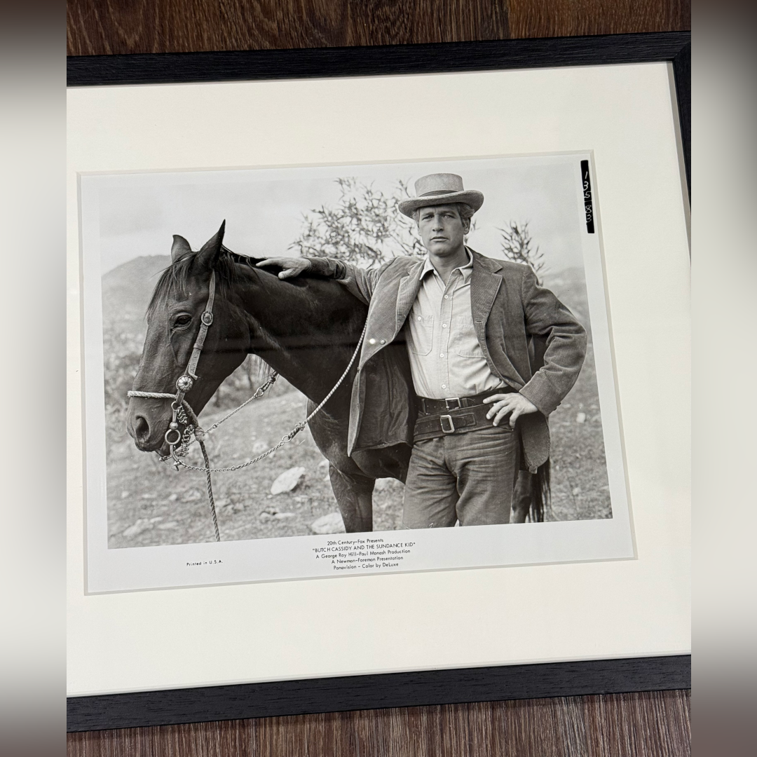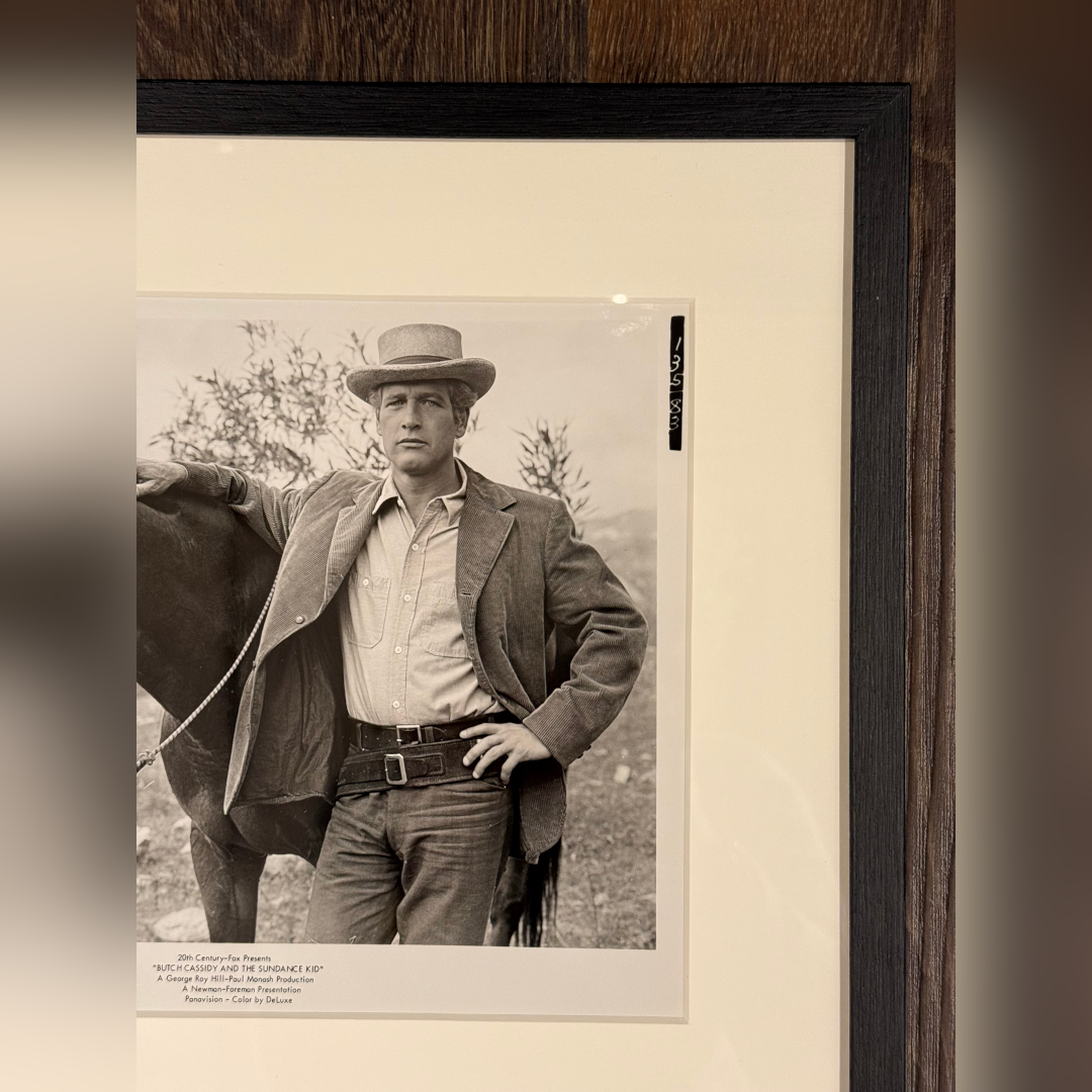 Wonderful (c/u of Paul Newman standing next to his horse!). An iconic original 1969 studio still featuring Paul Newman as Butch Cassidy, casually posed with his horse against the rugged Western landscape. Issued by 20th Century Fox for the film’s original release, this rare promotional photograph captures the quiet confidence and charisma that made Newman’s performance unforgettable.
