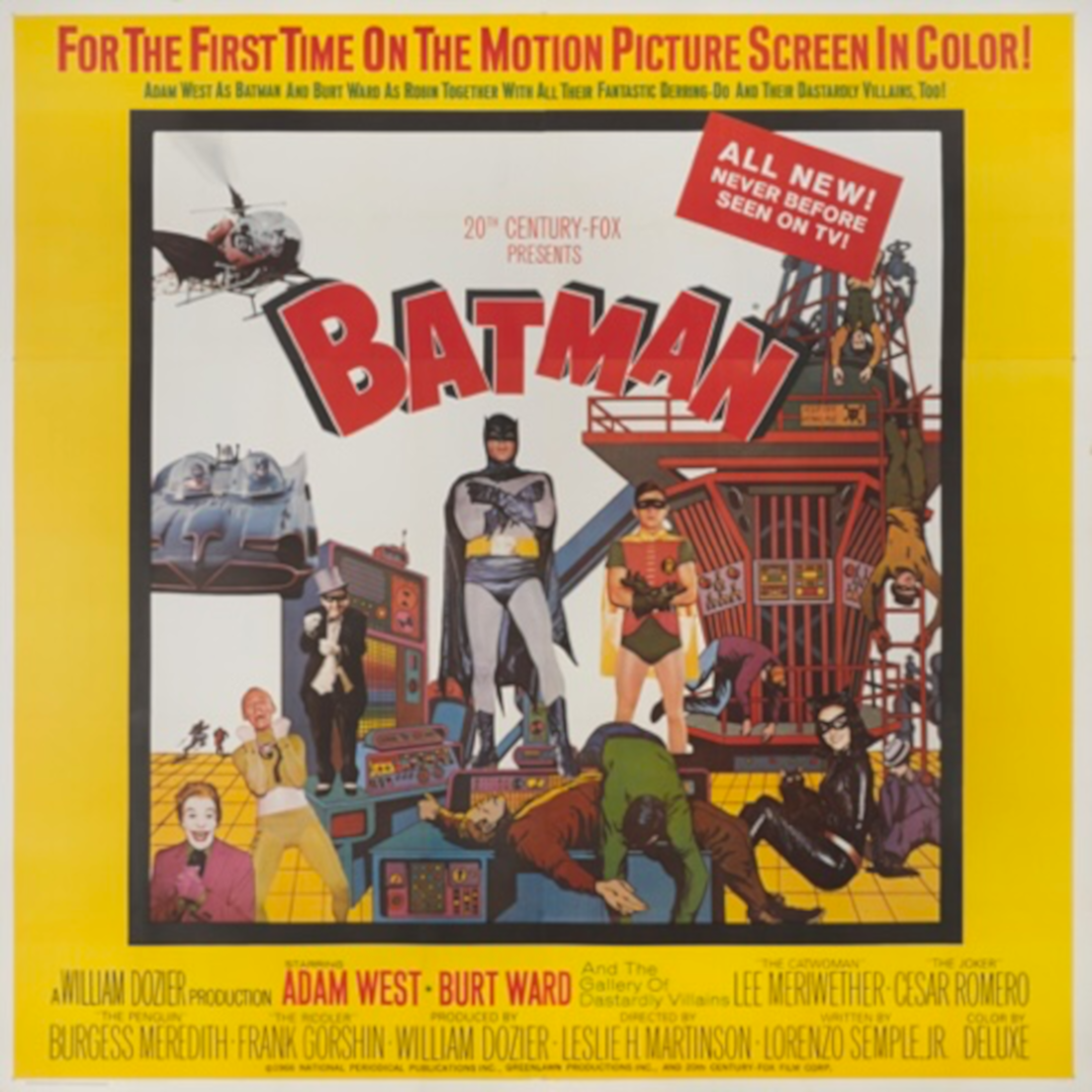 A truly spectacular and exceptionally rare original 1966 US 6-Sheet poster for Batman, the first theatrical feature film based on the iconic "Batmania" television series.