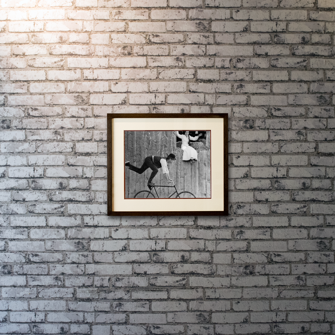 An iconic still from Butch Cassidy and the Sundance Kid (1969), featuring Paul Newman as Butch Cassidy performing his playful bicycle stunt while Katharine Ross, as Etta Place, looks on laughing from the barn loft. This lighthearted moment set to Burt Bacharach’s “Raindrops Keep Fallin’ on My Head” became one of the most famous and beloved scenes in film history.