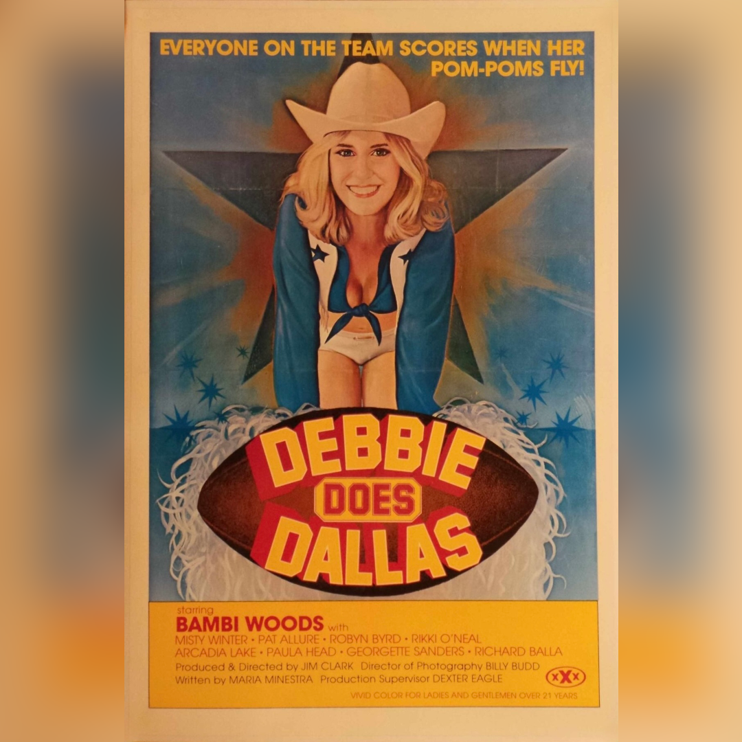 Arguably the most infamous and iconic adult film poster of all time, Debbie Does Dallas (1978) is a true relic of 1970s pop culture and exploitation cinema. Featuring Bambi Woods in her cheerleader glory, the poster captures the cheeky spirit of the golden age of adult films, with its playful tagline: “Everyone on the team scores when her pom-poms fly!”