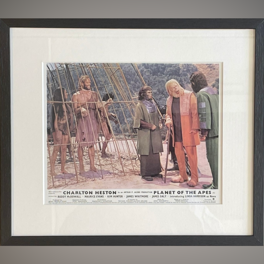 Franklin J. Schaffner’s sci-fi epic revolutionised the genre, using allegory and groundbreaking prosthetics to explore themes of civilisation, race, and power. This beautifully preserved card captures a pivotal moment and comes professionally framed, ready to hang.