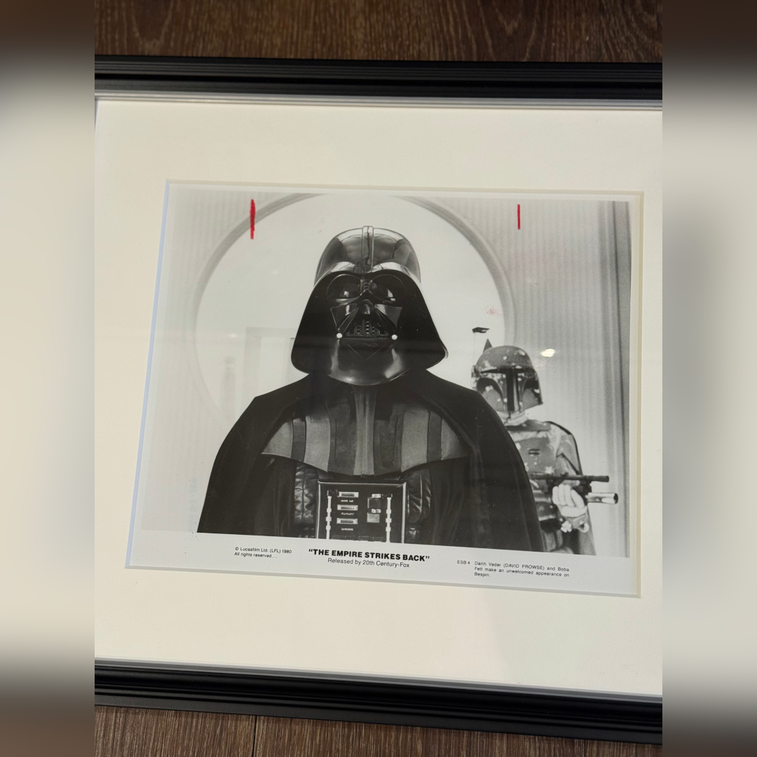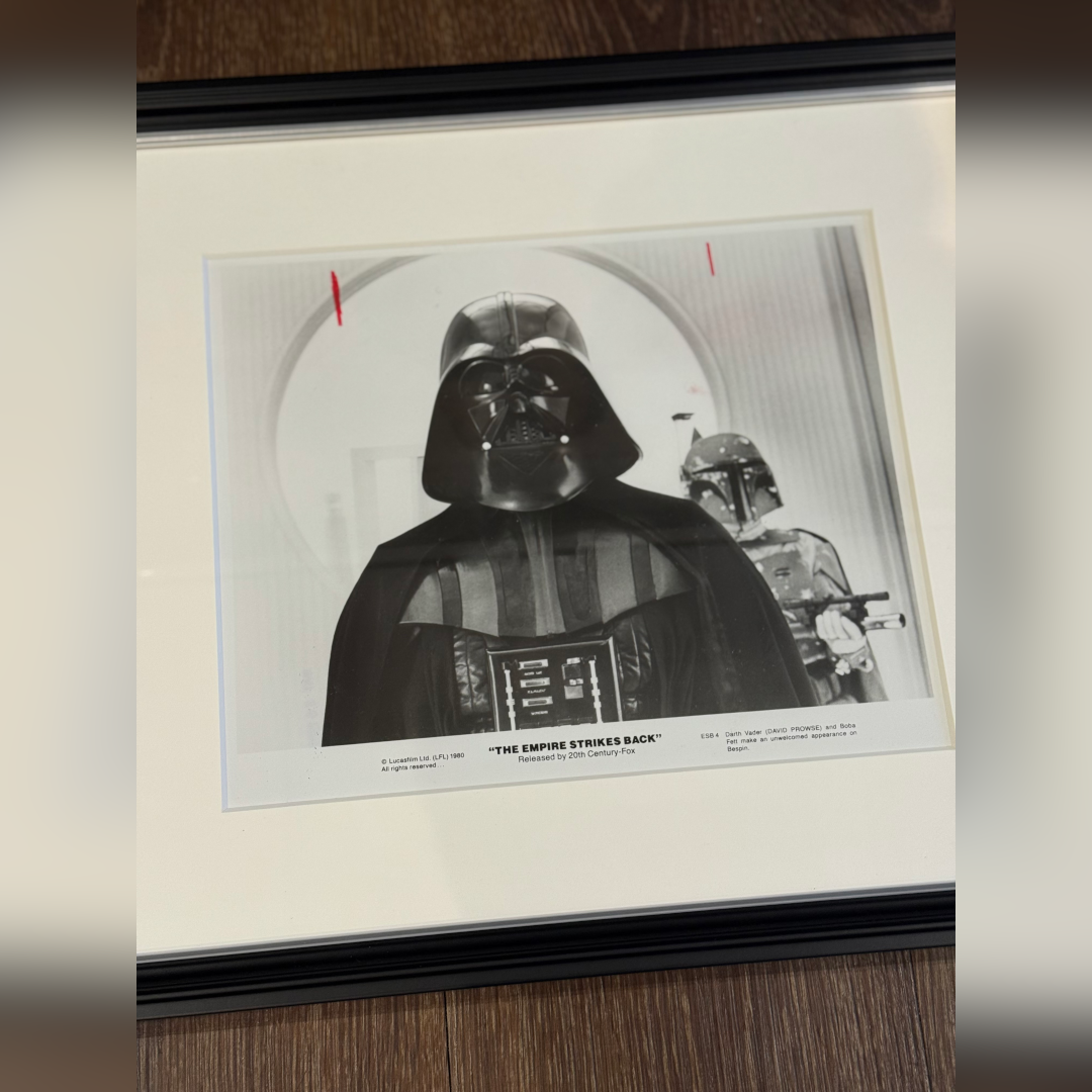 The Empire Strikes Back is widely regarded as the greatest chapter of the Star Wars saga—darker, deeper, and visually defining. Scenes involving Vader and Boba Fett helped cement both characters as cultural legends, influencing decades of film, television, and fandom. Original publicity stills from 1980 remain highly collectible, especially with such prominent villain imagery.