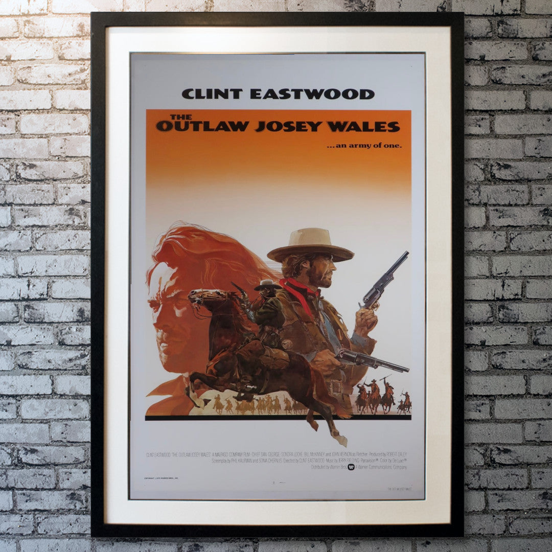 A rare and highly desirable international style one sheet poster for the first release of The Outlaw Josey Wales (1976), printed in the USA for overseas markets. Featuring striking alternative artwork not used on the standard U.S. one sheet, this version showcases dynamic painted imagery that captures the film’s sweeping action and Clint Eastwood’s commanding presence.