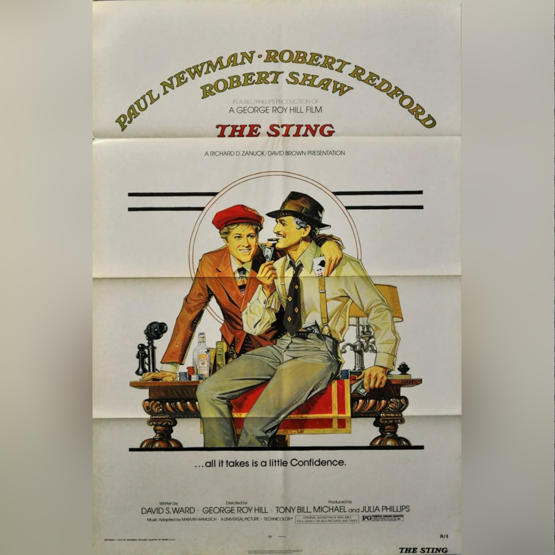 An original US One Sheet for The Sting (1973), George Roy Hill’s stylish caper starring Paul Newman and Robert Redford. Winner of seven Academy Awards, including Best Picture, this classic of American cinema is as much about charm and confidence as it is about the con.
